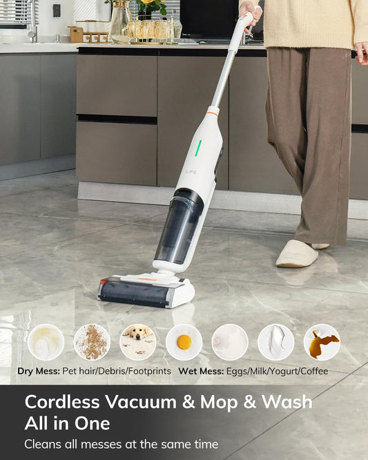 ILIFE W90 Cordless Wireless Wet Dry Smart Mop Washing , 5500Pa Suction, 1 Min Self Cleaning, Large Dual Water Tank