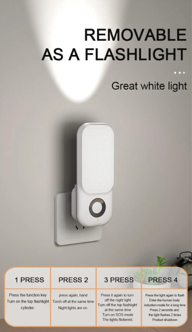 LED Induction Night Light Intelligent Wireless Charging Plug-In Aisle Corridor Bedroom Human Body Sensor Light with Flashlight