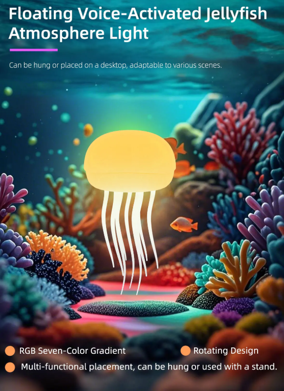 Intuitive Design & Rotation: With nine rotatable tentacles, the LED smart jellyfish night light mimics the natural movement of a jellyfish, captivating onlookers with its graceful and hypnotic dance, perfect for sparking imagination and wonder.