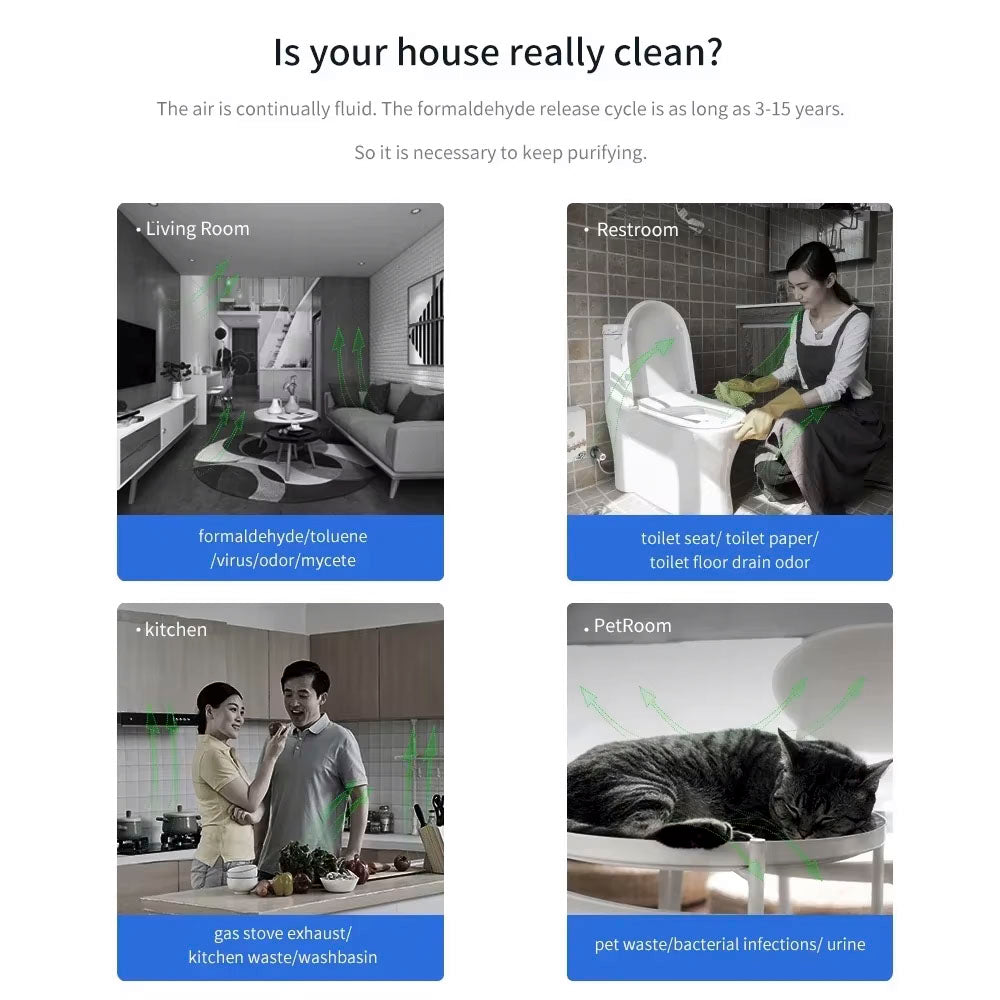 1. Contrairement à la manière traditionnelle de masquer les odeurs avec le parfum, ce désinfecteur d'air utilise l'ozone pour oxyder toutes les bactéries et micro-organismes dans l'air et sur la surface, éliminant efficacement les odeurs et les particules nocives dans l'air.