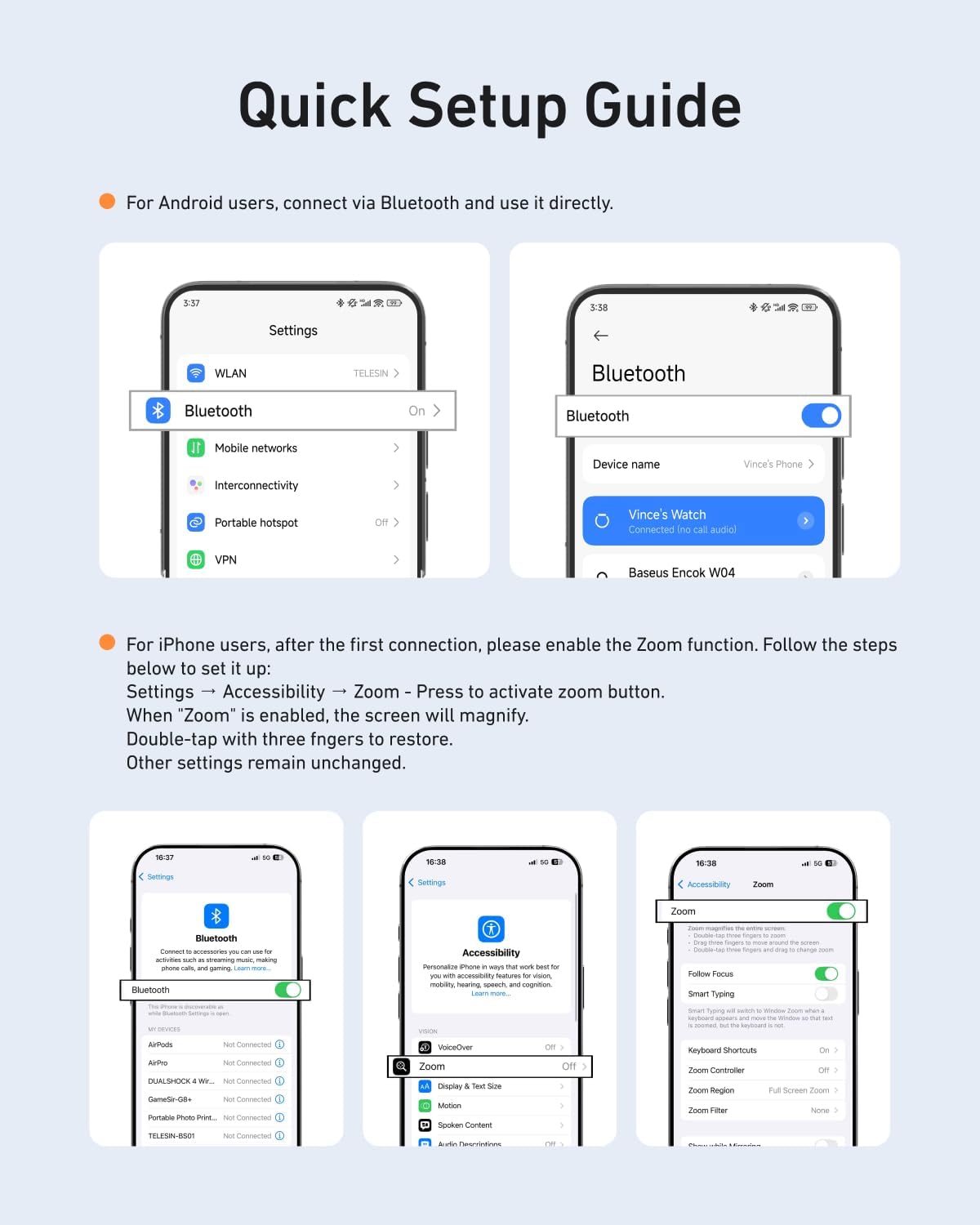 Includes a Bluetooth remote compatible with both iOS and Android devices. Connects instantly without needing extra apps — perfect for selfies, group shots, and hands-free recording.